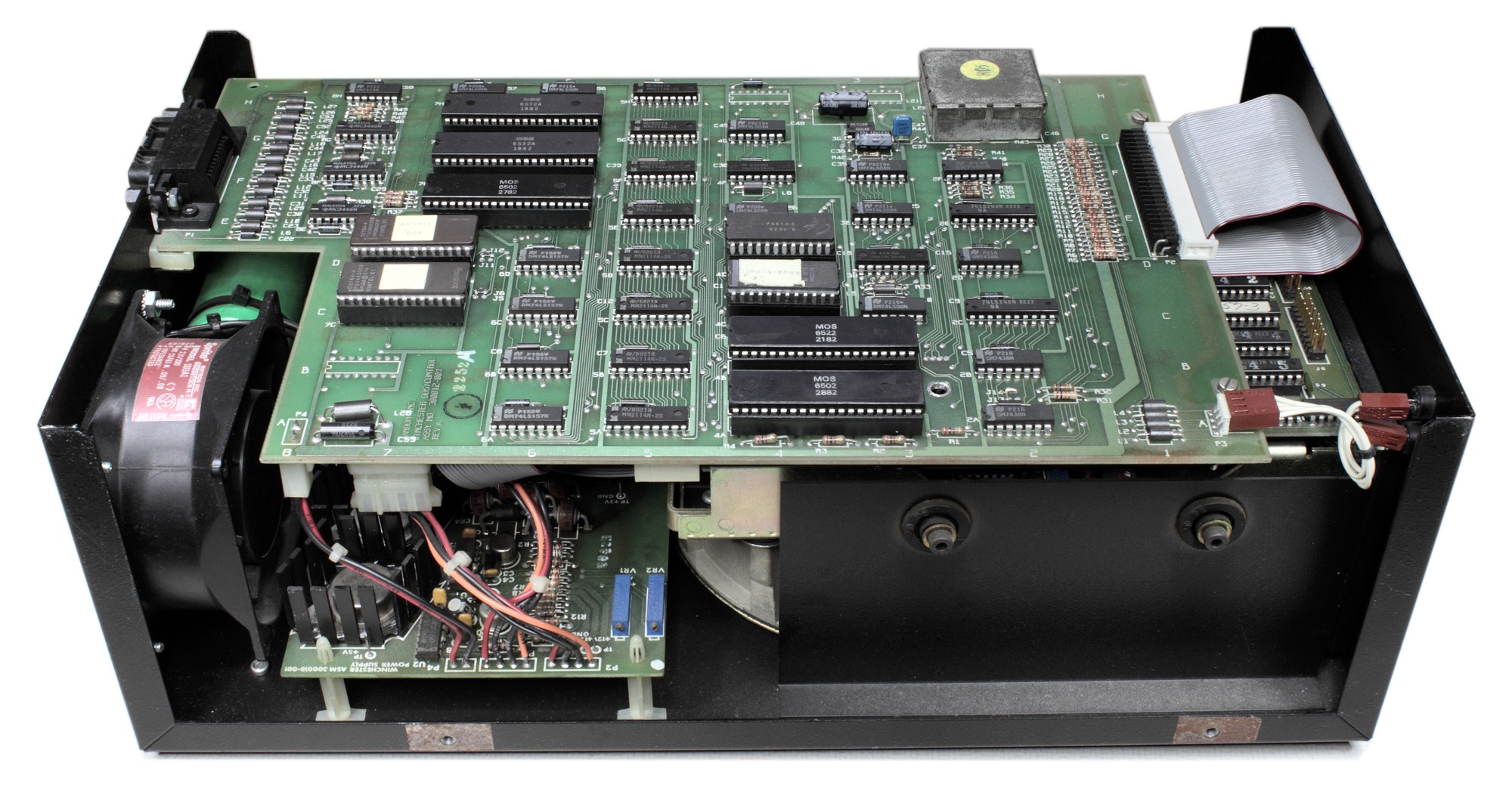 Wie in den Diskettenlaufwerken kommen zwei 6502 zum Einsatz, einer für den Bus, einer zum Ansteuern des Laufwerks. Zwischen Laufwerk und Hauptplatine befindet sich noch ein mittels mehrerer Flachbandkabel angeschlossenes SASI-ST506-Board (ein Vorläufer von SCSI), welches die Plattenansteuerung übernimmt. Theoretisch kann man an das SASI-Board noch eine zweite Platte anschließen, dies wird allerdings nicht vollständig vom DOS unterstützt - die Directories beider Laufwerke überlappen sich und die Anzeige für die freien Blocks zeigt immer nur den Wert vom ersten Laufwerk.