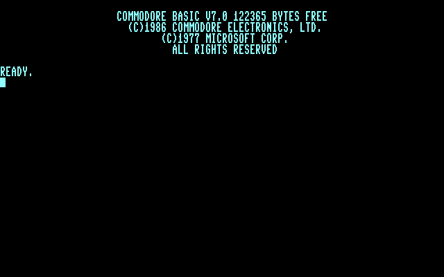 Sobald man den Rechner einschaltet, wird man von einer Einschaltmeldung begrüßt, die 122365 freie Basic Bytes meldet. Dieser Speicher ist, bedingt durch den nur 64 Kbyte großen Adressraum des Prozessors, nicht wirklich zusammenhängend ansprechbar; mittels einer MMU wird zwischen zwei 64 KByte Bänken umgeschaltet. Die MMU ermöglicht es auch, eine sogenannte Common Area einzurichten, die einen Speicherbereich einer anderen Speicherbank enthält. Dies ist zur Datenübergabe oder für einen Bankübergreifenden Programmablauf nötig. Der Rechner verfügt auch über einen zur freien Verfügung stehenden ROM-Steckplatz im inneren. Hier kann man selbst bespielte EPROMs bis zu einer Größe von 32 KByte einsetzen.
