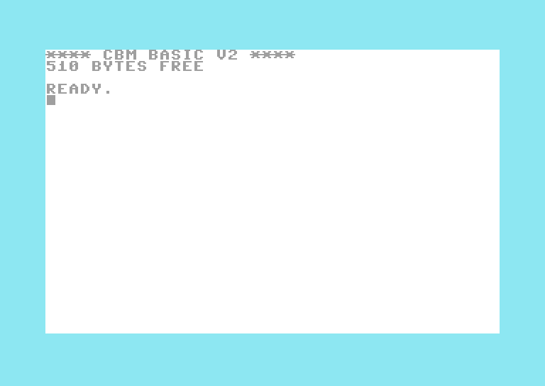 | ROM: | 20 KByte: - Basic V2.0 (8 KByte) - Kernal (8 KByte) - Zeichensatz (4KByte) |