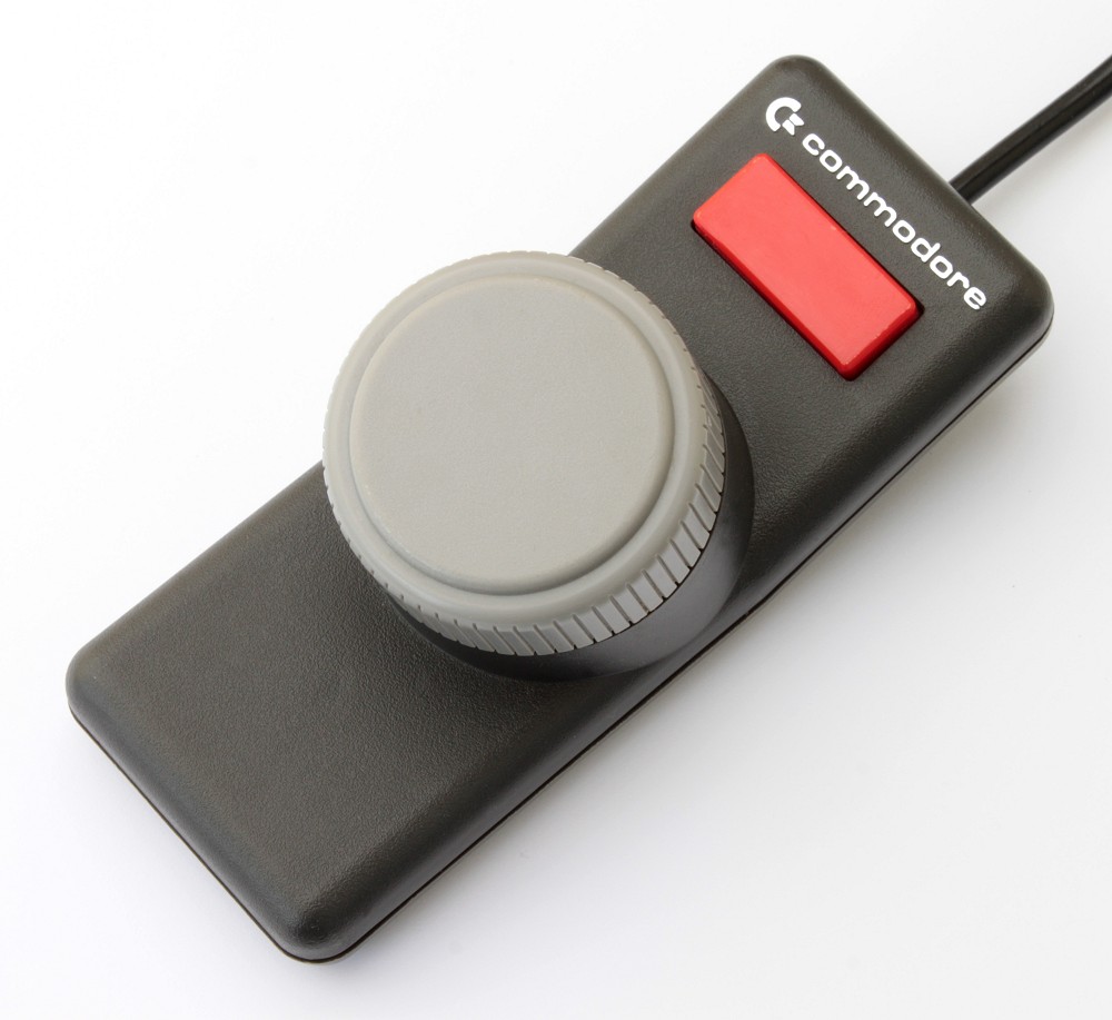 Paddles sind analoge Eingabegeräte, die aus einem Drehknopf und einem Potentiometer bestehen. Daneben findet sich noch ein Feuerknopf. Diese Geräte kann man verwenden, um etwa ein Lenkrad in einem Autorennspiel nachzubilden oder in einem der vielen Breakout und Pong Clones den Schläger präzise zu bewegen.